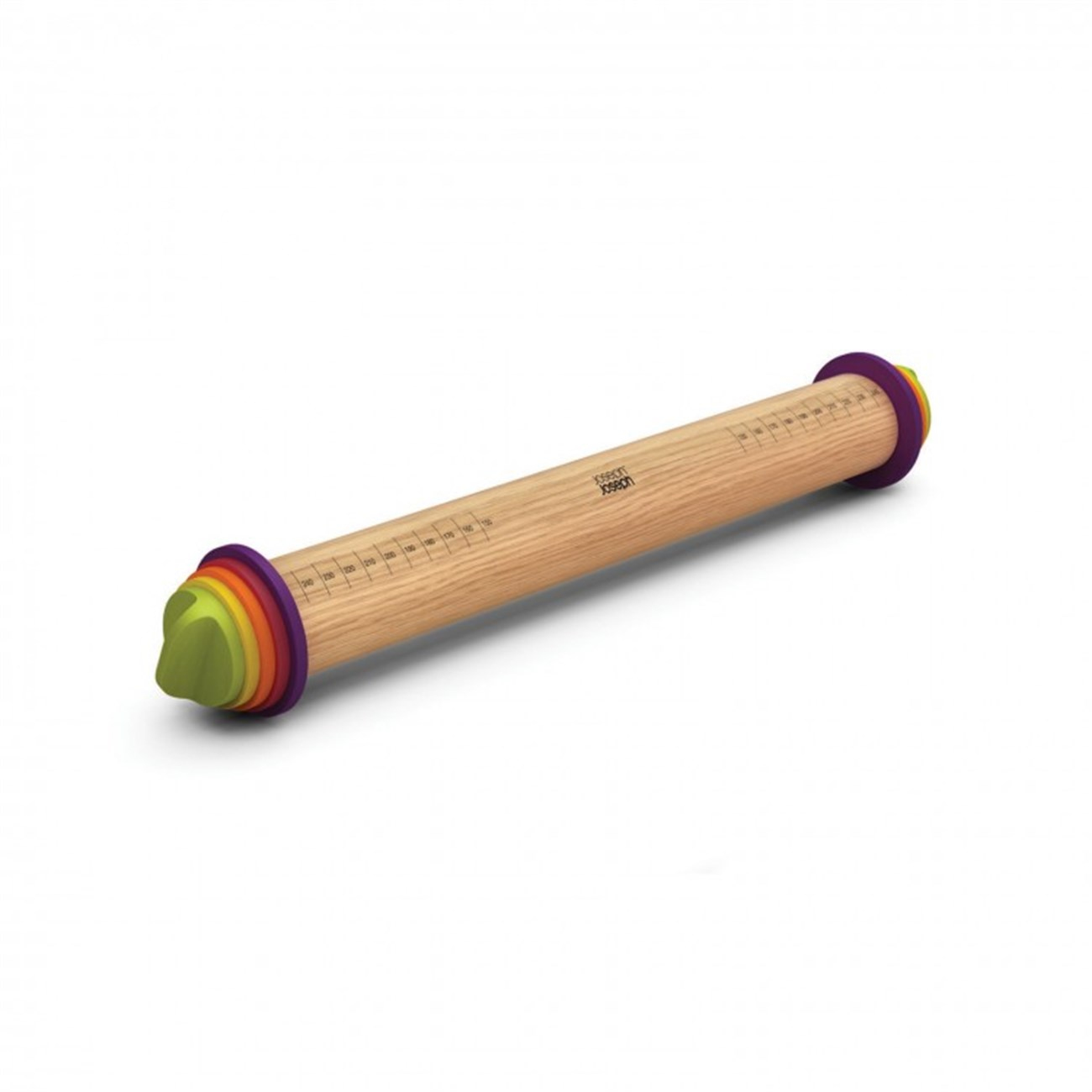 Ölçüm disklerine sahip ahşap merdane, hamurun tam istediğiniz kalınlıkta ve eşit olarak açmanıza yardımcı olur. Diskler kolay seçim için renklerle kodlanmıştır.